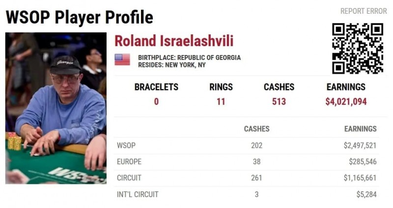 根据The Hendon Mob显示的数据,Israelashvili现场扑克职业生涯累积奖金超过450万美元,全球排名第447名,除了WSOP系赛事之外,他在其它比赛也是拿过不少冠军的,总体来说其实算是非常不错的成绩。